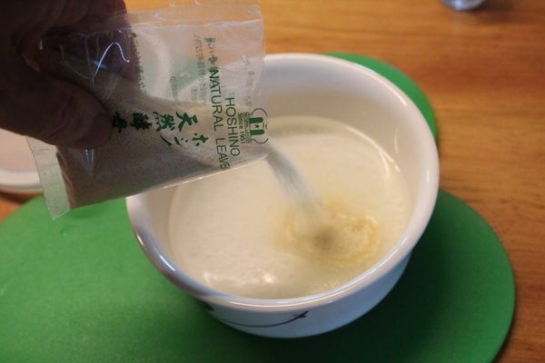 器皿先用熱水消毒過,將星野酵母以2倍的水慢慢調開。
