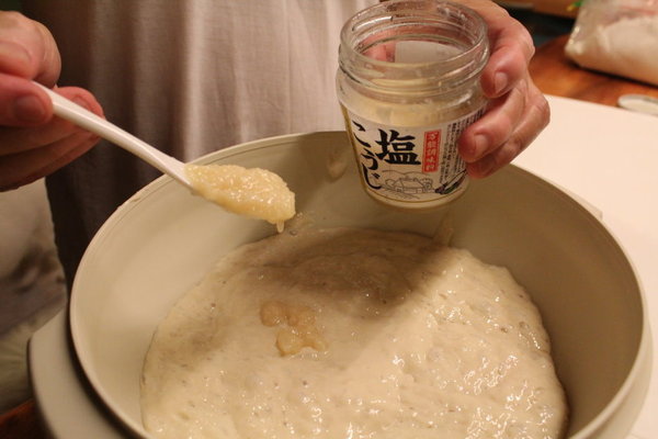 今天來試兩種東西,一個是泡了水就可養成的「天然酵母」,一個是將鹽麴加入麵包。兩個和在一起就成了:天然酵母鹽麴麵包。
