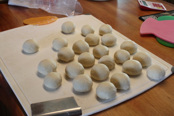 將麵糰取出壓扁排氣、分割、整圓,靜置30分鐘。