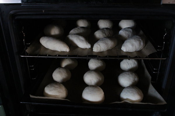 整好型後,直接放烤盤紙上,放入尚未加熱的烤箱中,進行第二次發酵,約60分鐘。