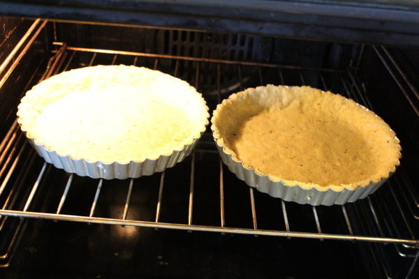 7.預熱好烤箱,200℃將派皮預烤10分鐘。也有人在玉米糊起鍋時也加一個蛋和奶油起士一起拌,似乎可以讓派皮更硬黏一點。