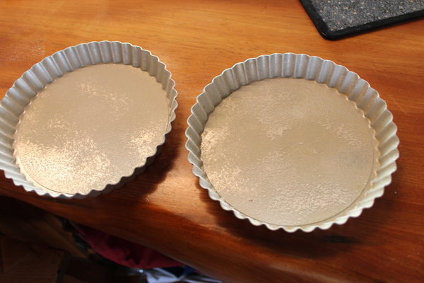 1.將7吋派模抹油後,灑上薄薄一層麵粉或玉米粉。